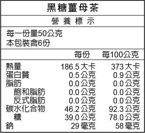 成份:二砂、黑糖、老薑